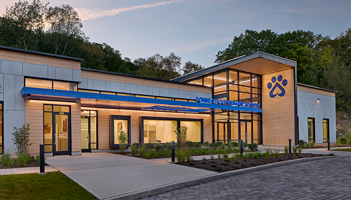 Viking Construction built this $17 million center, state-of-the-art pet healthcare and adoption facility, which includes a full veterinarian clinic with surgical and dental services in Wilton, CT. The one-story, 14,000-sq. ft. facility includes a pet care education center, a pet food pantry, pet housing, space for the pet adoption process, and extensive outdoor walking paths and pet play areas.